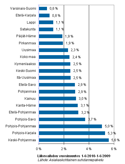 Pienyritysten liikevaihto kasvoi vuoden 2010 ensimmäisellä puoliskolla kaikissa maakunnissa. Parhaisiin kasvulukemiin päästiin Keski-Pohjanmaalla (5,6 %), Pohjois-Karjalassa (5,3 %) ja Pohjois-Pohjanmaalla (5,0 %). Yli 3 prosentin kasvulukemiin yllettiin Kanta-Hämeessä, Etelä-Pohjanmaalla ja Pohjois-Savossa.