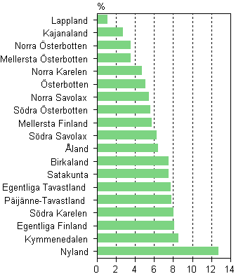 Den bebyggda markens andel av Finlands landareal var 4,4 procent år 2010. Av landarealen var 77 procent skogs- och tvinmark, nästan 9 procent jordbruksmark och 10 procent övrig mark. Uppgifterna framgår av Statistikcentralens publikation över miljöstatistik 2011.