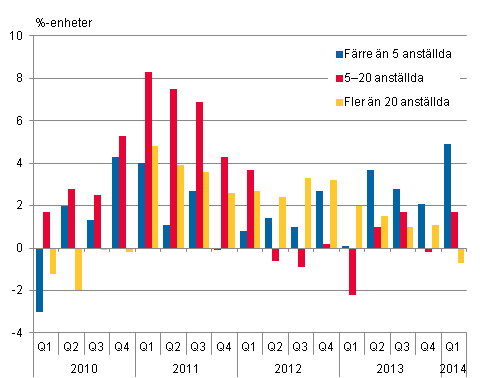 Under januari–mars ökade små företag med färre än 5 anställda betydligt sin omsättning i landskapet Södra Karelen. Omsättningen i företag med färre än 5 anställda ökade med nästan en femtedel jämfört med motsvarande period år 2013. I Södra Karelen är omkring 80 procent av företagen inom handeln små företag.