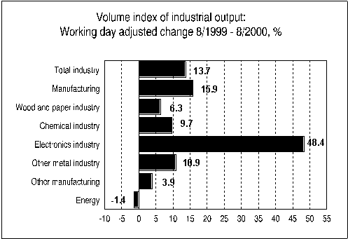 Source: Volume Index of Industrial Output 2000, August. Statistics Finland