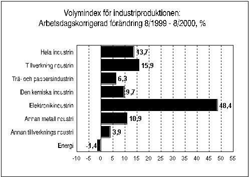 Källa: Volymindex för industriproduktionen 2000, augusti. Statistikcentralen