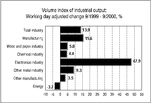 Source: Volume Index of Industrial Output 2000, September. Statistics Finland