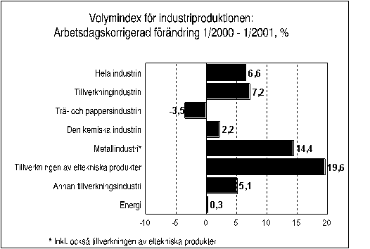 Källa: Volymindex för industriproduktionen 2001, januari, förhandsuppgifter. Statistikcentralen