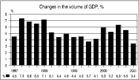 GDP grew by 3.4 per cent in the first quarter of 2001