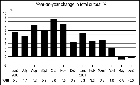 Source: Monthly Indicator of Total Output 2001, June. Statistics Finland