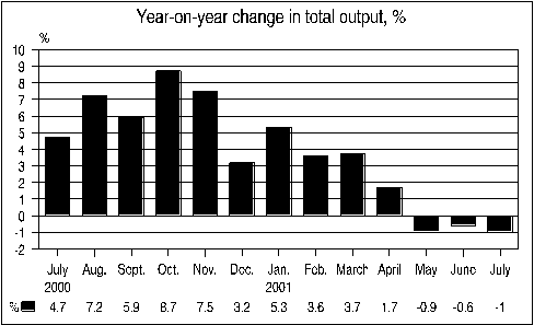 Source: Monthly Indicator of Total Output 2001, July. Statistics Finland