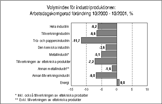 Källa: Volymindex för industriproduktionen 2001, förhandsuppgifter för oktober. Statistikcentralen StatFin-statistiktjänsten under adress statfin.stat.fi