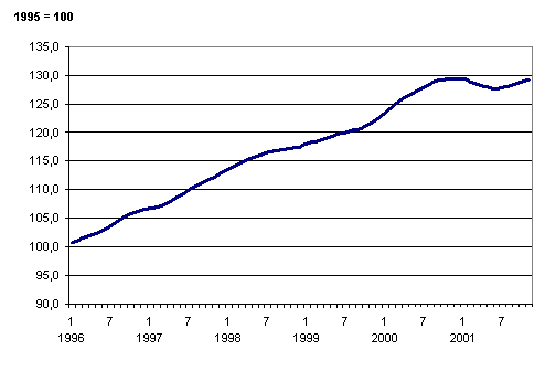 Lähde: Kokonaistuotannon kuukausikuvaaja 2001, marraskuu. Tilastokeskus
