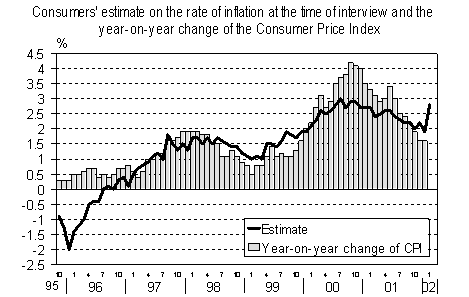 Of consumers 41 per cent estimated that unemployment will start to increase this year. The corresponding proportion was 45 per cent in December. Just 9 per cent of employed persons feared they would themselves become unemployed in 2002. In December this was the case for 11 per cent of employed persons.