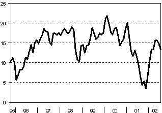 In July consumers' estimates on unemployment were pessimistic for the first time since March. Twenty-seven per cent of respondents believed that unemployment would fall in the next 12 months but more than that, i.e. 32 per cent estimated unemployment to worsen. In July one tenth of employed persons reckoned that they were likely to become personally unemployed in the next 12 months. Consumers predicted that the rate of inflation would be 1.7 per cent in July 2003.