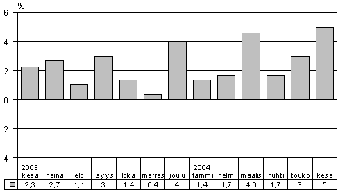 Vuoden 2003 kesäkuusta kokonaistuotanto kasvoi 5,0 prosenttia