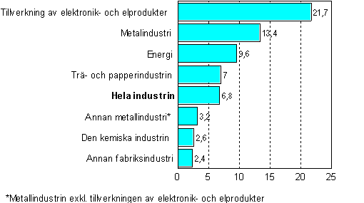 I juli 2004 ökade den säsongrensade industriproduktionen med 6,8 procent från juli 2003. Produktionen ökade mest inom tillverkningen av elektronik- och elprodukter, hela 21,7 procent. Produktionen inom trä- och pappersindustrin ökade med 7 procent. Produktionen ökade i juli inom alla näringsgrenar.