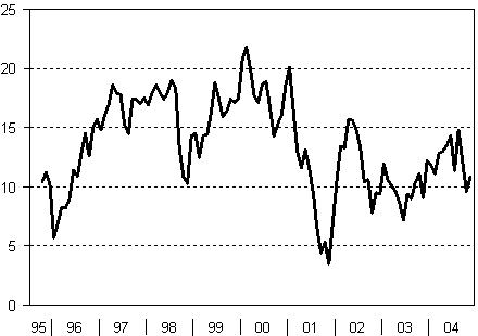 Konsumenternas förtroendeindikator 10/1995-11/2004