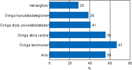 Finländare som skulle vilja bo i ett egnahemshus efter kommuntyp, %