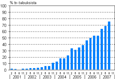 Digisovittimen yleistyminen tv-talouksissa 2/2001-8/2007