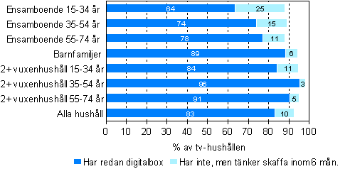 I november var digitalboxar ovanligast i ensamboende personers tv-hushåll: av under 35-åriga singlar ägde först drygt 60 procent en digitalbox. När man beaktar planerna på att skaffa digitalbox kan fler än var tionde ensamboende ännu vara utan digitalbox i vår.