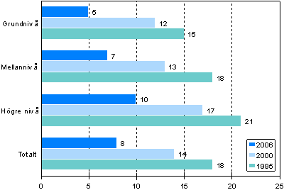 Källa: Kirsti Pohjanpää, Helena Niemi ja Timo Ruuskanen (2008): Osallistuminen aikuiskoulutukseen. Aikuiskoulutustutkimus 2006. Koulutus 2008. Tilastokeskus. Helsinki. (endast på finska)