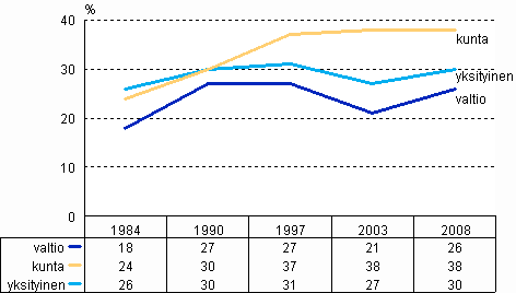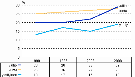 Lähde: Työolojen kolme vuosikymmentä. Työolotutkimusten tuloksia 1977-2008. Tilastokeskus