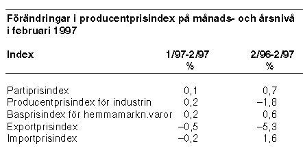 Från februari i fjol har exportpriserna sjunkit med 5,3 procent, vilket berott på att papper och kartong, cellulosa, basmetaller samt pälsdjursskinn blivit billigare. Priserna på papper och kartong är drygt 10 procent och priset på cellulosa omkring 27 procent lägre än i februari i fjol.