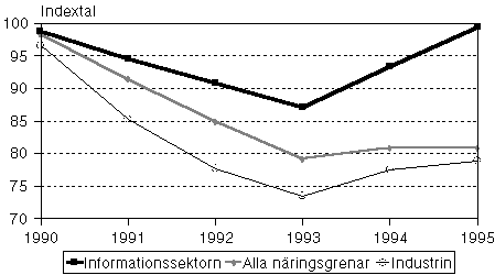 År 1995 arbetade sammanlagt 183 000 personer inom informationssektorn. Åren 1994-1995 svarade de centrala näringsgrenarna inom informationssektorn för en tredjedel av den ökade sysselsättningen. Ända upp till hälften av de nya arbetsplatserna inom industrin uppstod inom informationssektorn.