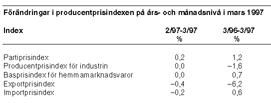 Källa: Producentprisindex, mars 1997