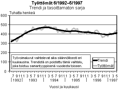 Tilastokeskus on uudistanut työvoimatutkimuksen vuoden 1997 alusta vastaamaan paremmin Euroopan unionin ja ILOn käyttämiä käsitteitä ja määritelmiä. Uudistuksen vuoksi vertailut vuotta aiempaan tilanteeseen ovat vuoden 1997 aikana tavanomaista epävarmempia. Uudistuksen vaikutus edellisen vuoden toukokuun lukuihin on arvioitu ja korjattu tässä julkaistaviin tuloksiin.