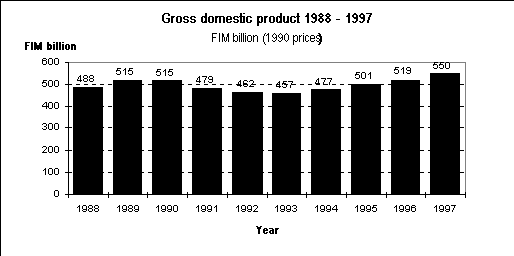 National income grew by 8.6 per cent in nominal terms in 1997, and was FIM 99,100 per capita.