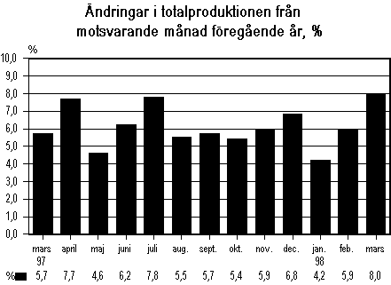 Källa: Månadsgraf över totalproduktionen, mars 1998. Statistikcentralen