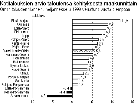 Lähde: Kuluttajabarometri maakunnittain 1999, 1. neljännes. Tilastokeskus