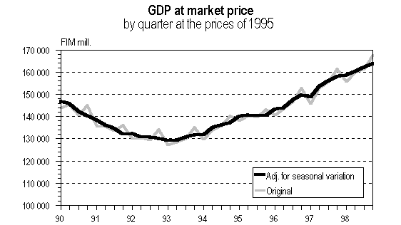 Source: National Accounts 1998, 4th quarter (The statistics are based on the revised European System of Accounts, ESA 1995). Statistics Finland