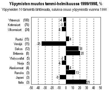 Lähde: Matkailutilasto 1999, helmikuu. Tilastokeskus