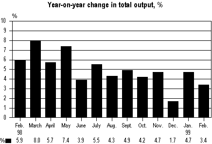 Source: The Monthly Indicator of Total Output 1999, February. Statistics Finland.