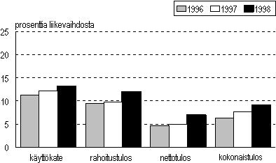Lähde: Teollisuusyritysten tilinpäätöstilasto, tietoja teollisuuden ja rakentamisen suurista yrityksistä 1998. Lisätietoja www.tilastokeskus.fi/tk/yr/tepika98.html