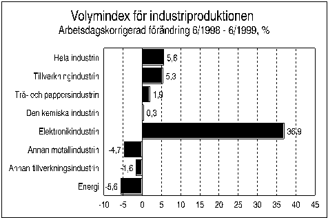 Källa: Volymindex för industriproduktionen 1999, juni. Statistikcentralen