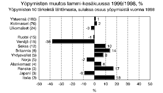 Lähde: Matkailutilasto 1999, kesäkuu. Tilastokeskus