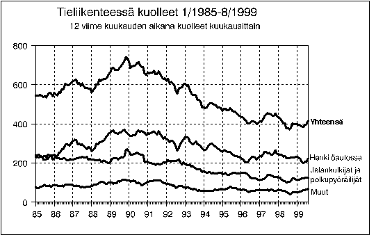 Tieliikenteessä tapahtui Tilastokeskuksen ennakkotietojen mukaan elokuussa 688 henkilövahinkoon johtanutta onnettomuutta. Niissä kuoli 55 ja loukkaantui 868 ihmistä. Kuolleita oli 18 enemmän kuin vuoden 1998 elokuussa, kun taas loukkaantuneita oli 116 vähemmän.