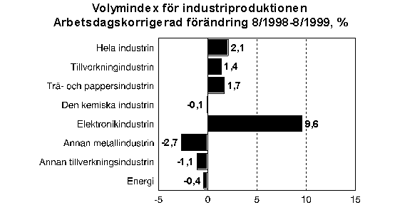 Källa: Volymindex för industriproduktionen 1999, augusti. Statistikcentralen