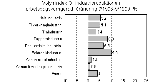 Källa: Volymindex för industriproduktionen 1999, september. Statistikcentralen