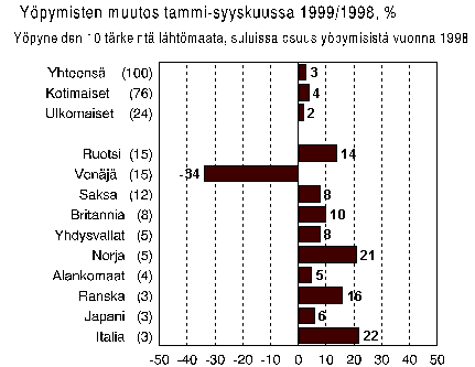 Lähde: Matkailutilasto 1999, syyskuu. Tilastokeskus