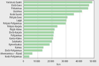Etelä-Savossa puolestaan on eniten järviä suhteessa maapinta-alaan. Lappi on kokonaispinta-alaltaan Suomen suurin maakunta, jossa on eniten rantaviivaa (Saaristoasiain neuvottelukunta 2012). Lapin mökkimääriä kasvattavat myös monet hiihtokeskukset.