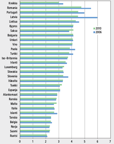 Lähde: Eurostat. Structure of earnings survey 2006, 2010.