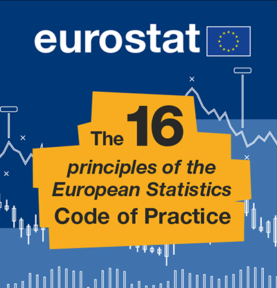 The 16 principles of the European Statistics Code of Practice cover the institutional environment, the statistical production processes and the output of statistics.