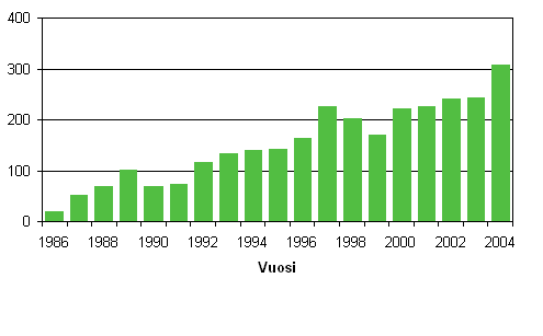 Tilastokeskuksen mukaan Suomeen adoptoitiin ulkomailla syntyneitä lapsia vuoden 2004 aikana 310. Määrä on 65 enemmän kuin vuonna 2003. Ulkomailla syntyneiden lasten adoptointien määrä on viimeisen 20 vuoden aikana jatkuvasti kasvanut paria poikkeusvuotta lukuun ottamatta. Vuosina 1986 - 1990 Suomeen adoptoitiin ulkomailta vain keskimäärin 60 lasta. Vuonna 2004 ulkomailla syntyneitä poikalapsia adoptoitiin 105 ja tyttölapsia 205.