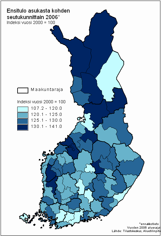 Ensitulo asukasta kohden seutukunnittain 2006*, indeksi vuosi 2000 = 100