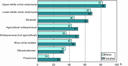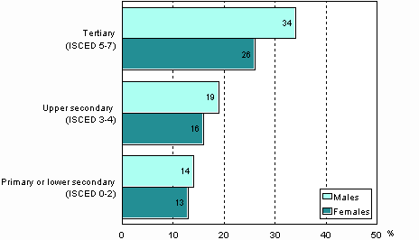 Participation in adult education and training was closely dependent on the level of educational attainment, in that the higher the level of education that a person possessed, the greater the likelihood of participation in adult education and training. Analysis in terms of socio-economic group similarly showed those in higher positions at work to participate in adult education and training the most. The differences between the groups representing level of basic education and socio-economic group were more pronounced among the men.
