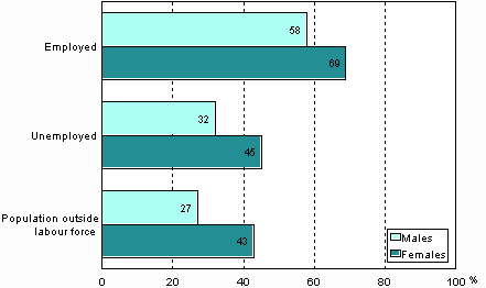 One half of the labour force studied in connection with their work or occupation