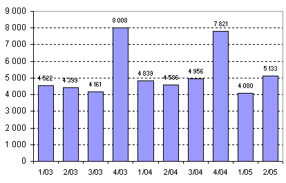 Aloittaneet yritykset 3. neljännes 2005, lopettaneet yritykset 2. neljännes 2005