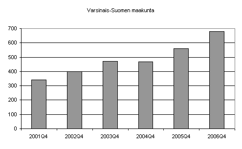 Vuoden 2006 viimeisellä neljänneksellä uusia yrityksiä suhteessa yrityskantaan perustettiin keskimäärin 2,6 prosenttia. Vuoden 2005 viimeisellä neljänneksellä vastaava luku oli 2,3 prosenttia. Suhteessa yrityskantaan eniten yrityksiä perustettiin rahoitustoiminnan (3,9%) sekä majoitus- ja ravitsemistoiminnan (3,5%) toimialoilla.