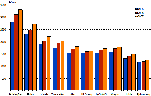 Antalet bostadsköp var år 2007 på samma nivå som året innan. Köpesumman steg dock från år 2006. År 2007 uppgick handeln med bostadsaktier till 78 000 och dess totala värde var 9,2 miljarder euro, vilket är ungefär 0,5 miljarder euro mer än året innan. I omkring 70 000 bostadsköp var köpobjektet en fritt finansierad gammal bostad. Uppgifterna framgår av Statistikcentralens statistik över bostadspriser för år 2007, som bygger på skatteförvaltningens material.