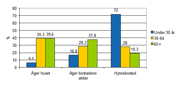 Tre av fyra hushåll med personer under 30 år bodde i hyresbostäder